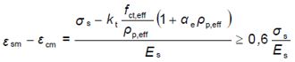 εsm: the mean strain in the reinforcement under the relevant combination of loads, including the effect of imposed deformations and taking into account the effects of tension stiffening. Only the additional tensile strain beyond the state of zero strain of the concrete at the same level is considered